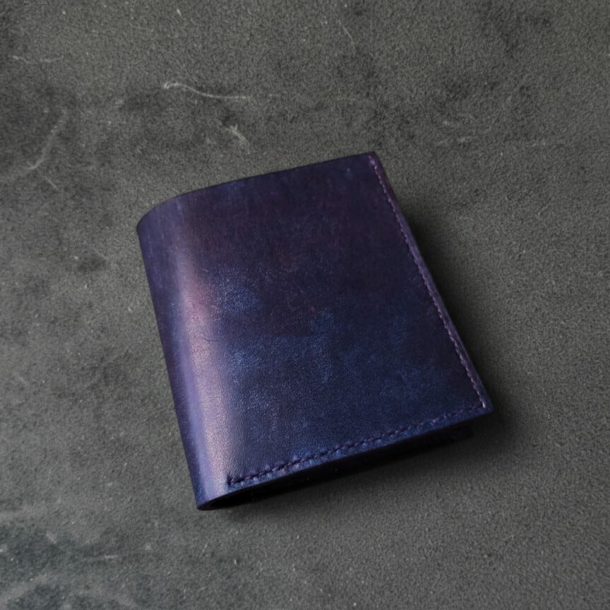 国産のタンニンなめしレザーを手染めし、手縫いで仕立てました。